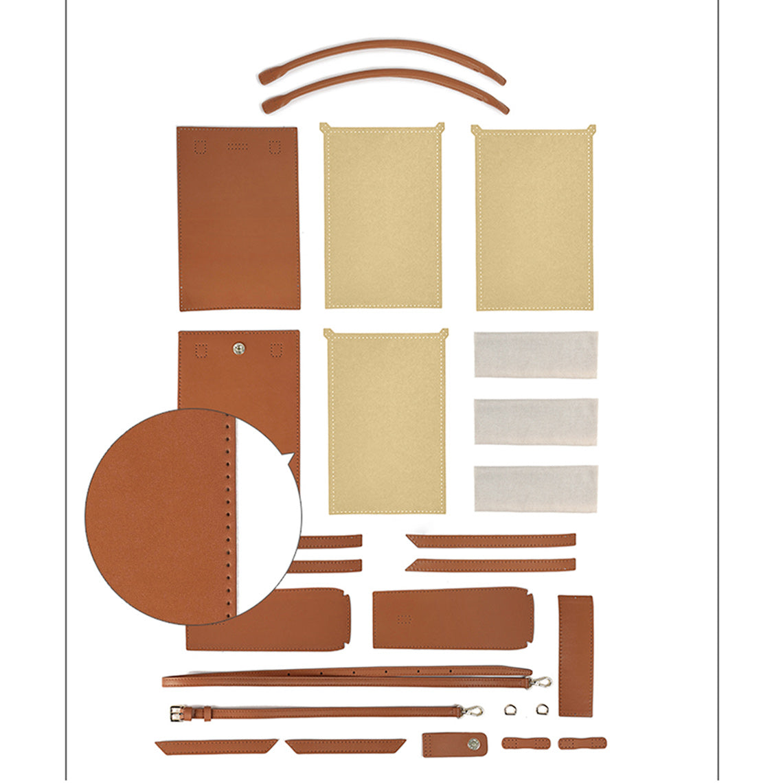- The kit includes all precut and pre-punched leather & fabric pieces and hardware