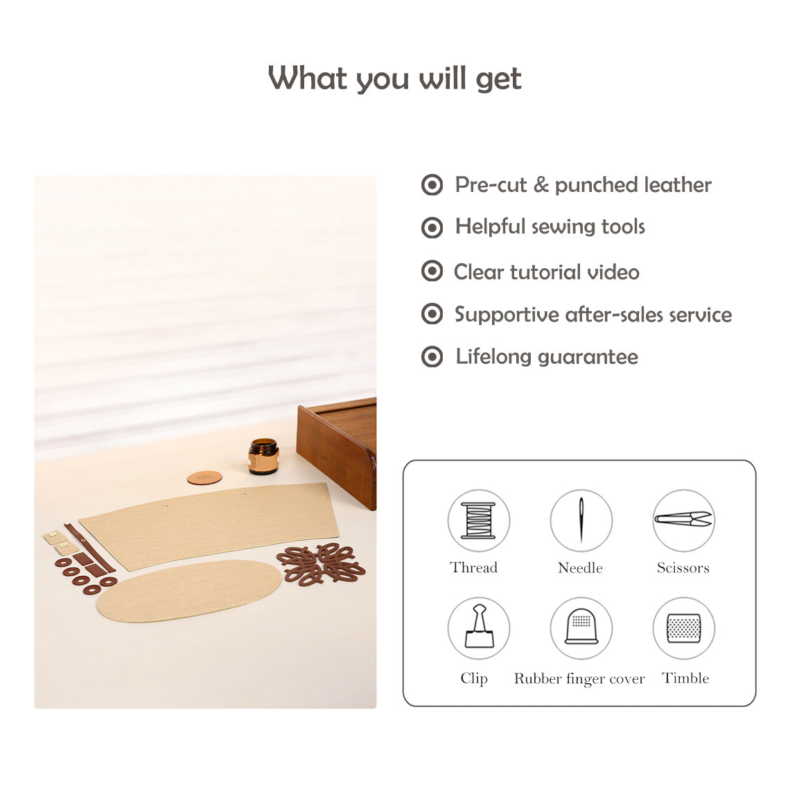 This tote bag DIY kit was inspired by the hottest straw basket bag from the brand house, featuring our quality textured split leather. This leather bag kit is designed to be beginner friendly. The DIY leather kit includes all necessary pre-cut and punched leather pieces and sewing tools so you can enjoy sewing it up on the guide of our instruction video.